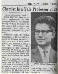 Profesör denilince aklımıza hep yaşlı insanlar gelir. Saçları aklaşmış, yüzleri kırışmış ve bir o kadar da bilge görünen insanlar… Oktay Sinanoğlunu diğerlerinden ayıran en büyük farklardan biride buydu. 20. Yüzyılda Yale Üniversite’nde “tam profesörlük” unvanını en genç yaşta (28 yaşında) kazanan öğretim üyesi oldu. Henüz orta yaşlarının başlarında olan Sinanoğlu 1963 yılında profesör ilan edildi. Peki bu hızlı gelişen başarının sırrı neydi ?